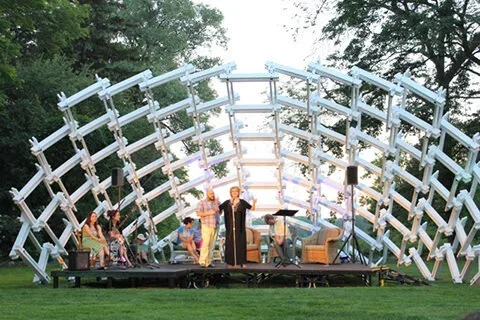 In 2013 Ragdale launched the first design-build competition to activate the campus in new ways. Since that time, it has presented eleven dynamic open air installation that have provided architects and designers with the opportunity to create works in a unique setting. These constructions have served as backdrops for public presentations of readings, musical performances, and theatrical productions, which encourage new ways of understanding architecture, public space, and the larger history of the site.